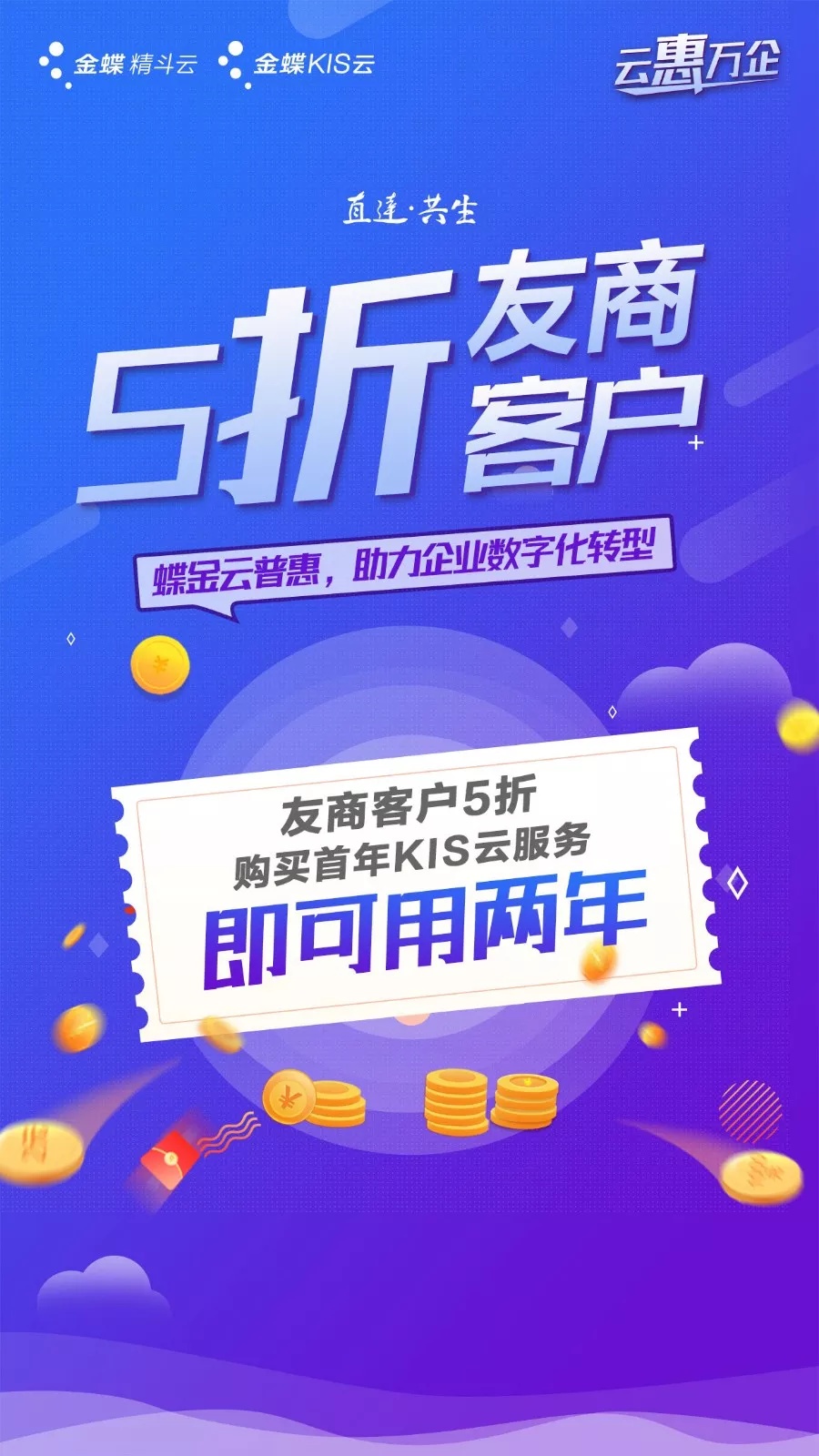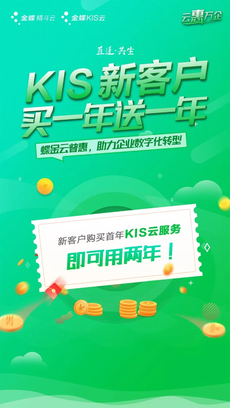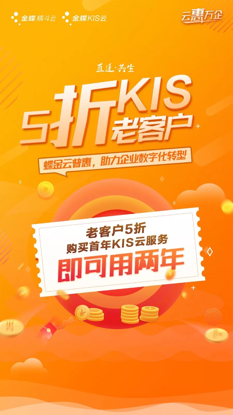 為響應(yīng)全國各地政府上云行動號召,貫徹金蝶集團“加速云轉(zhuǎn)型,直達并成就客戶”戰(zhàn)略理念,更直接、更廣泛地普惠全國的中小微企業(yè),金蝶蝶金云普惠活動火熱來襲,實實在在幫助中小微企業(yè)節(jié)約信息化升級成本,享受上云帶來的利好!