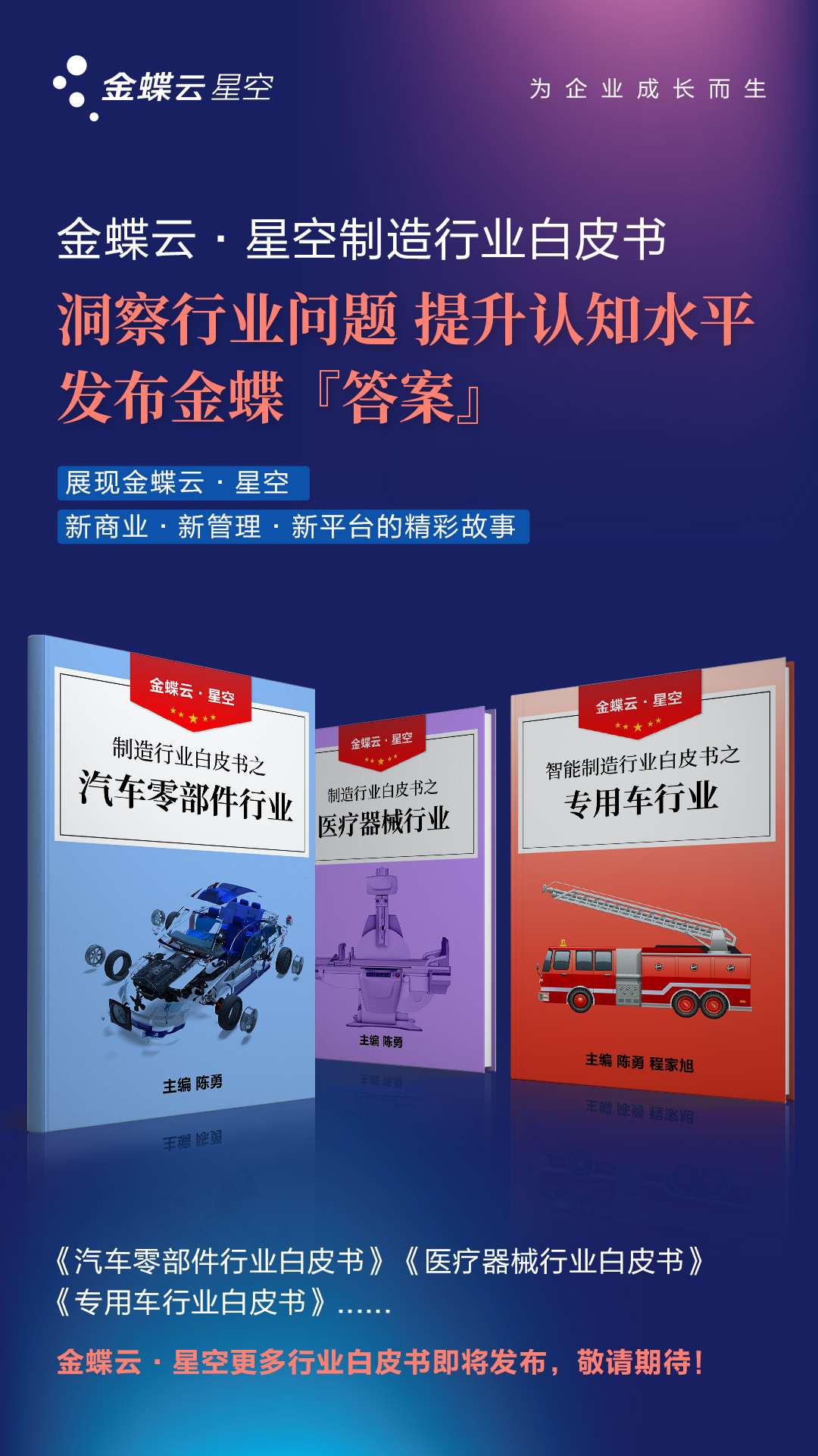 金蝶云·星空結(jié)合金蝶20多年在制造領(lǐng)域的深耕實(shí)踐,圍繞“為制造企業(yè)解決真問(wèn)題”,總結(jié)多家客戶(hù)實(shí)踐,基于行業(yè)洞察實(shí)踐視角,細(xì)分制造行業(yè),編制了《制造行業(yè)白皮書(shū)》,為實(shí)體企業(yè)的轉(zhuǎn)型提供戰(zhàn)略藍(lán)圖和行動(dòng)實(shí)施路徑參考。