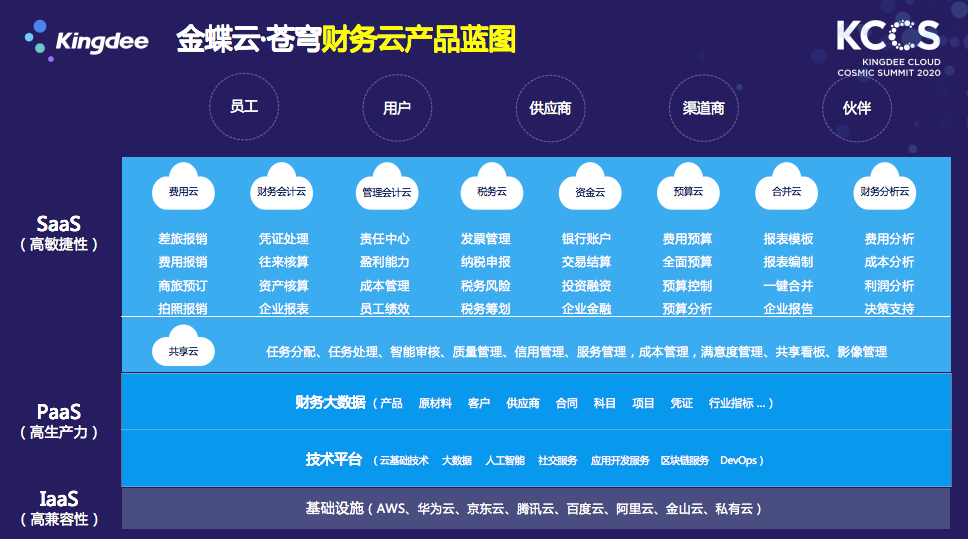 金蝶云.蒼穹作為首款云原生架構(gòu)的產(chǎn)品,其PaaS平臺(tái)與傳統(tǒng)云廠商的PaaS平臺(tái)有一些概念上的不同。一般的IaaS層提供的是存儲(chǔ)服務(wù)、計(jì)算服務(wù),也會(huì)配套提供一些高控制力的PaaS層,即泛域,主要對(duì)計(jì)算服務(wù)、中間件、數(shù)據(jù)計(jì)算提供泛域的服務(wù),比較關(guān)注IaaS層和PaaS層的內(nèi)容。而金蝶的蒼穹關(guān)注的是中間限定域的高生產(chǎn)力PaaS層和SaaS層的應(yīng)用。這個(gè)高生產(chǎn)力的PaaS層主要提供應(yīng)用開(kāi)發(fā)服務(wù)、流程服務(wù)、集成服務(wù),是跟企業(yè)應(yīng)用更貼近的服務(wù),而不是云計(jì)算資源的服務(wù)。所以金蝶云·蒼穹提供的是SaaS和PaaS高生產(chǎn)力的連續(xù)體。